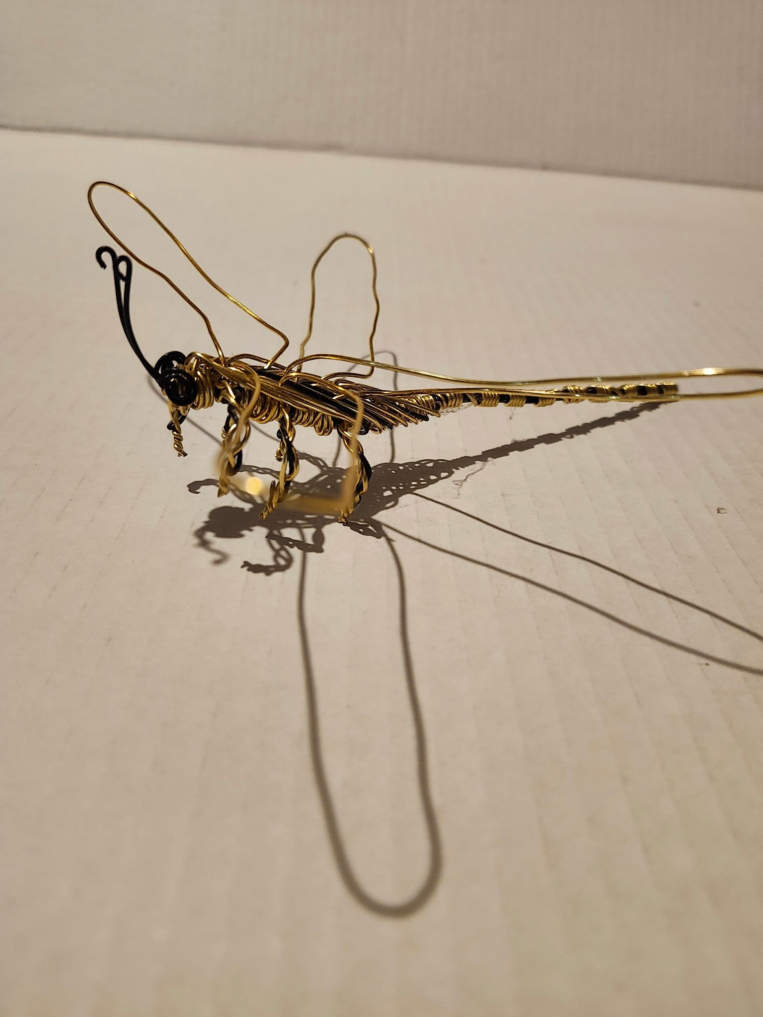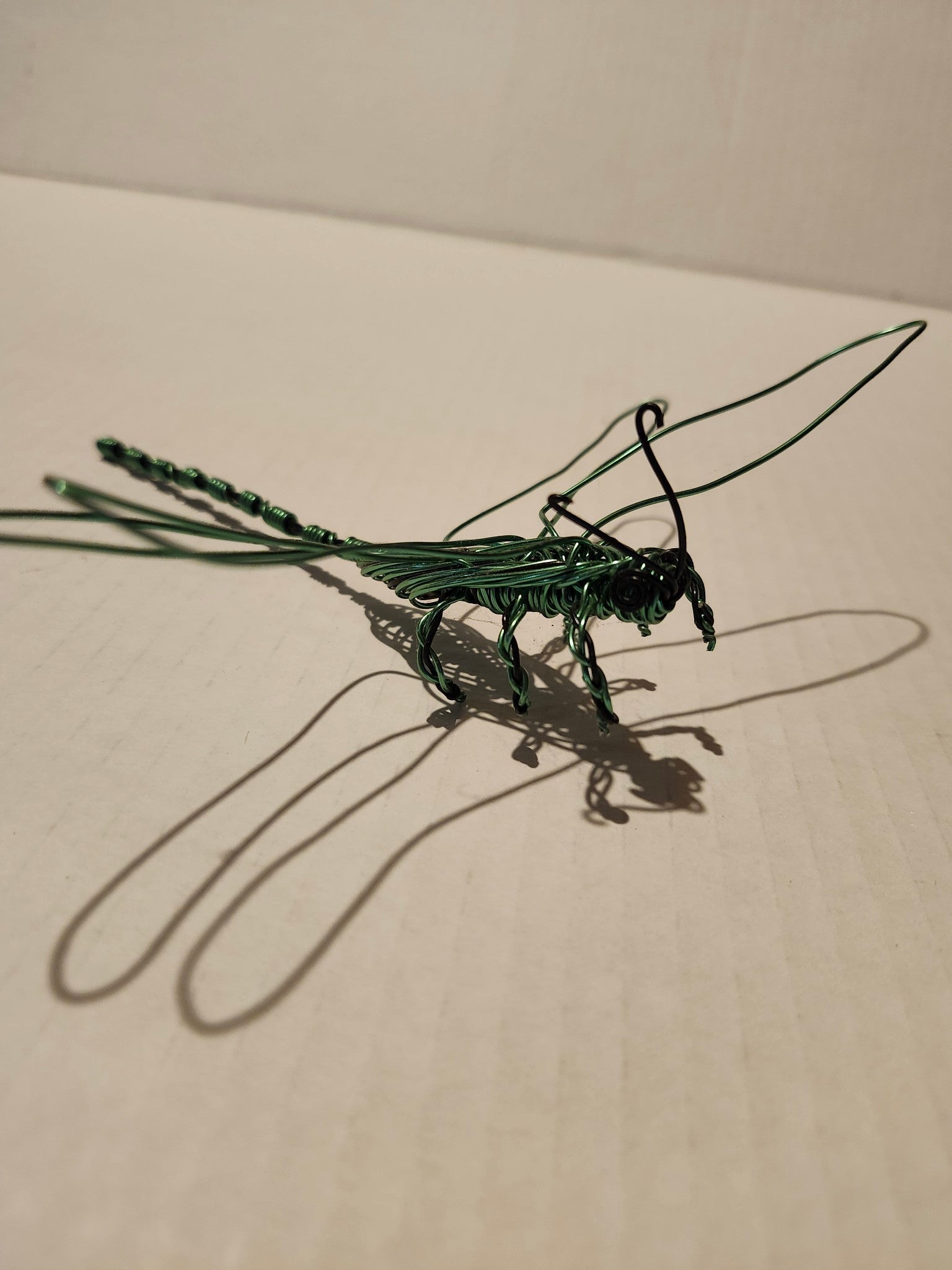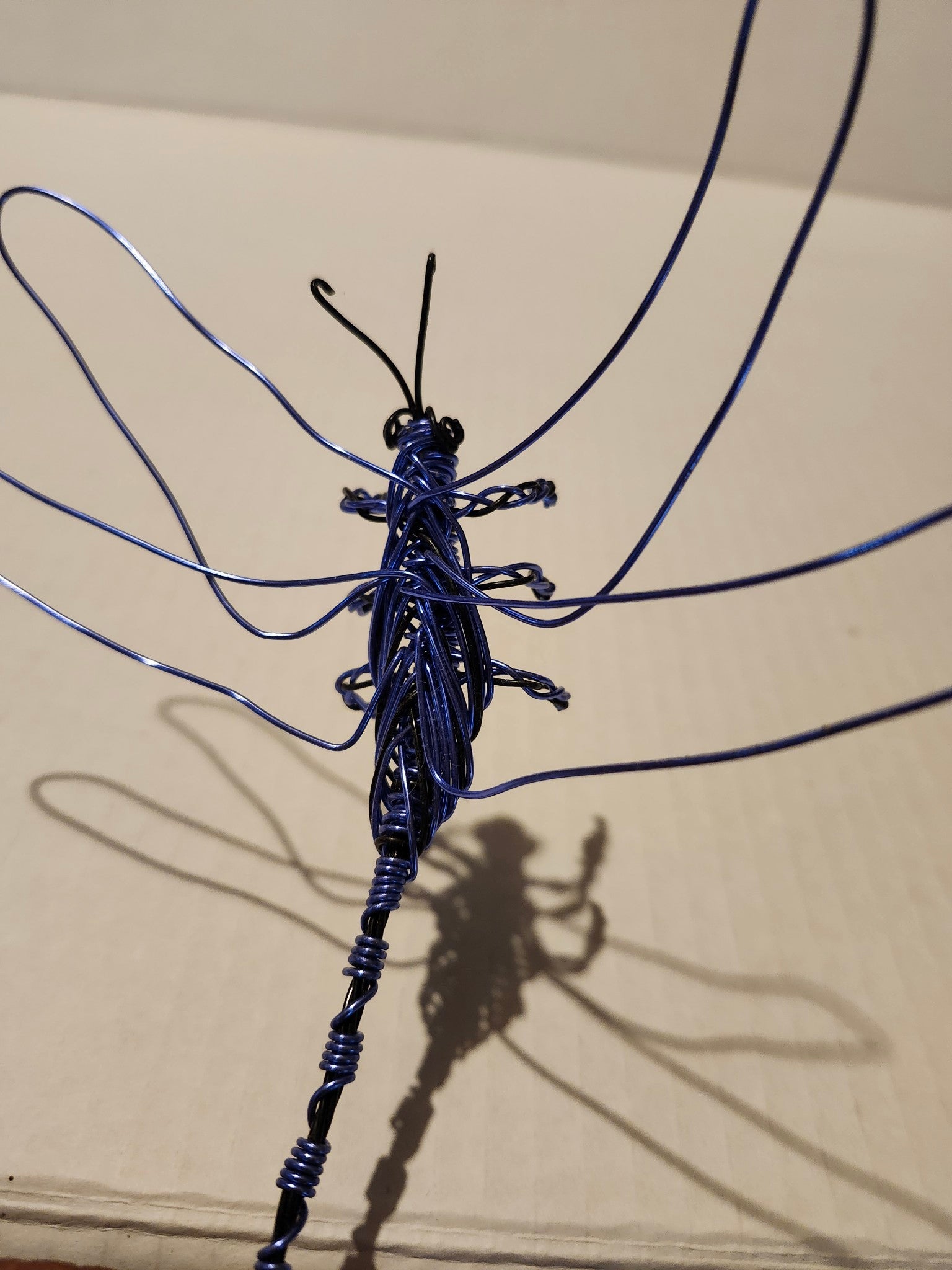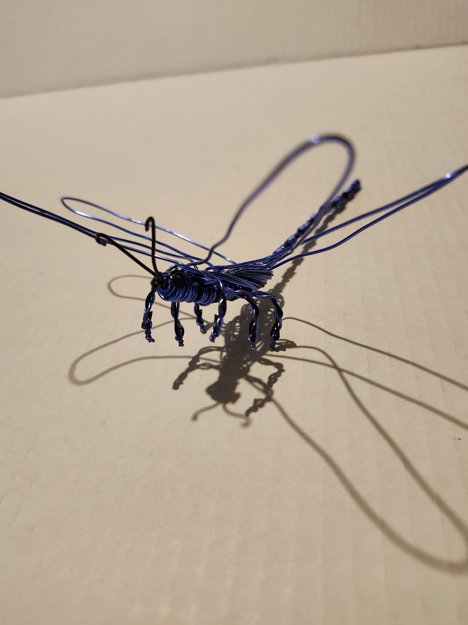 Handcrafted design from 18 gauge aluminum artisan wire in an exact replica of a lifelike dragonfly. These are a crafted made to order sculpture, so please give 2 extra days for processing. Great for decorations. Not to be used as a child toy so to sharp ends of the wire. Colors will vary according to available supplies